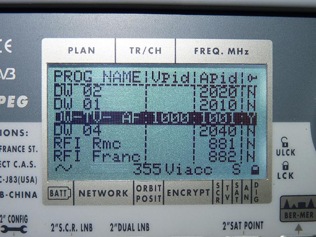---SR--- | ---FEC--- | ---Footprint--- | ---Antenna--- | ---Video/Encryption--- |