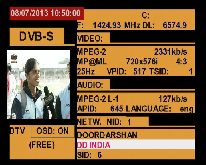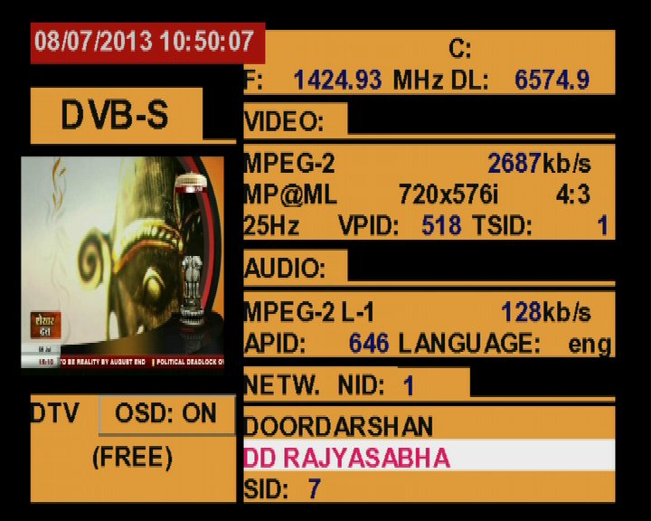 3 725 @ 1 424 MHz @ SPAN 500 MHz : 93.5°E Doordarshan India