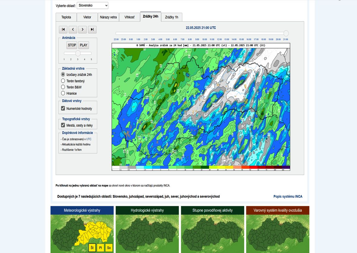 +48 hodín_ Priebežný stav v signálnom monitoringu dňa 21.5.2025 a online video ukážky
