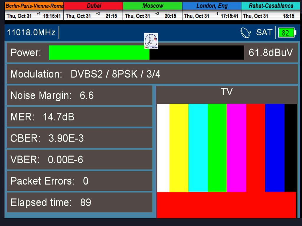 > Transmision parameters : DVB-S2 _ 8PSK _ SR=3 330 _ FEC=3/4 <