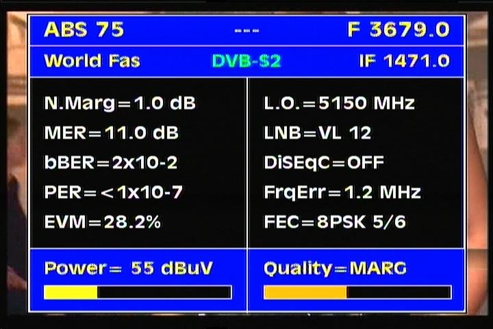 ABS 1 at 75.0°E-B footprint : 3 560 V packet CTH Cable Thai Holding-qualitative peak MER=12.2 dB