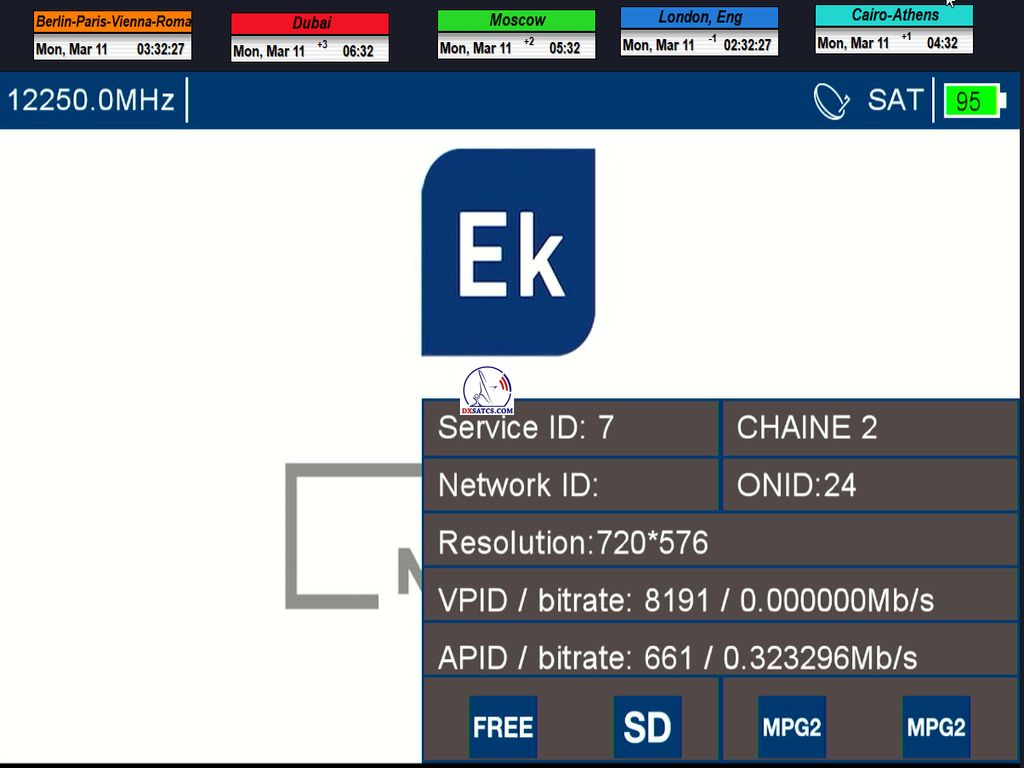 > Transmision parameters : DVB-S _ QPSK _ SR=12 510 _ FEC=3/4 <