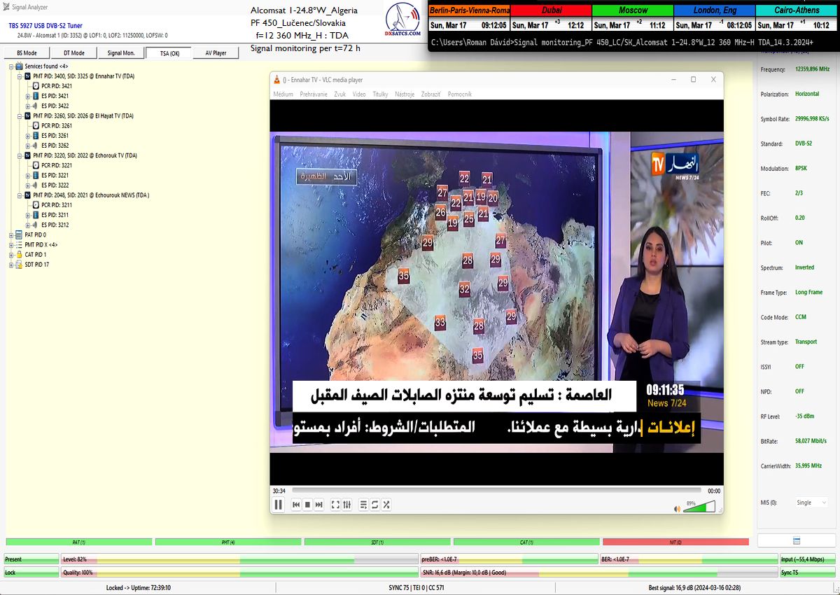 ►►Alcomsat 1 at 24.8°W-TDA Algeria : Continuous signal monitoring / Nepretržitý signálny monitoring