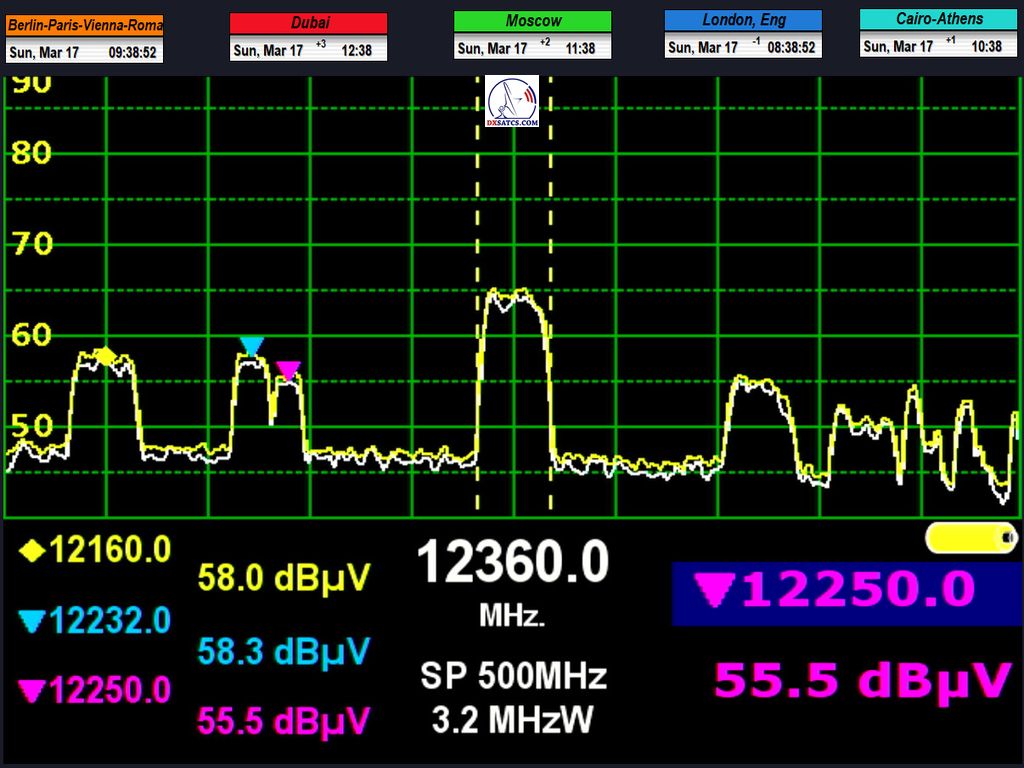 ►Analyzovaný rozsah frekvenčného spektra od 12 160 do 12 360 MHz_H,ktoré okupujú 4 nosné alžírskeho operátora TDA
