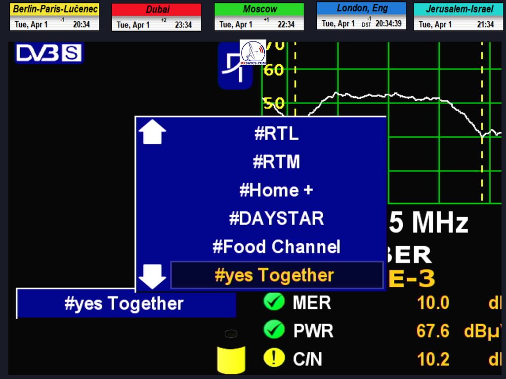carriers of the Israeli provider YES, transmitted via the AMOS 3 satellite at the 4.0°W position in the 10,722–10,926 MHz_V band.