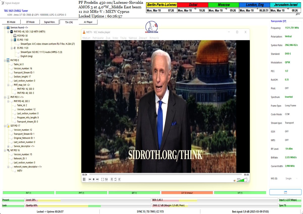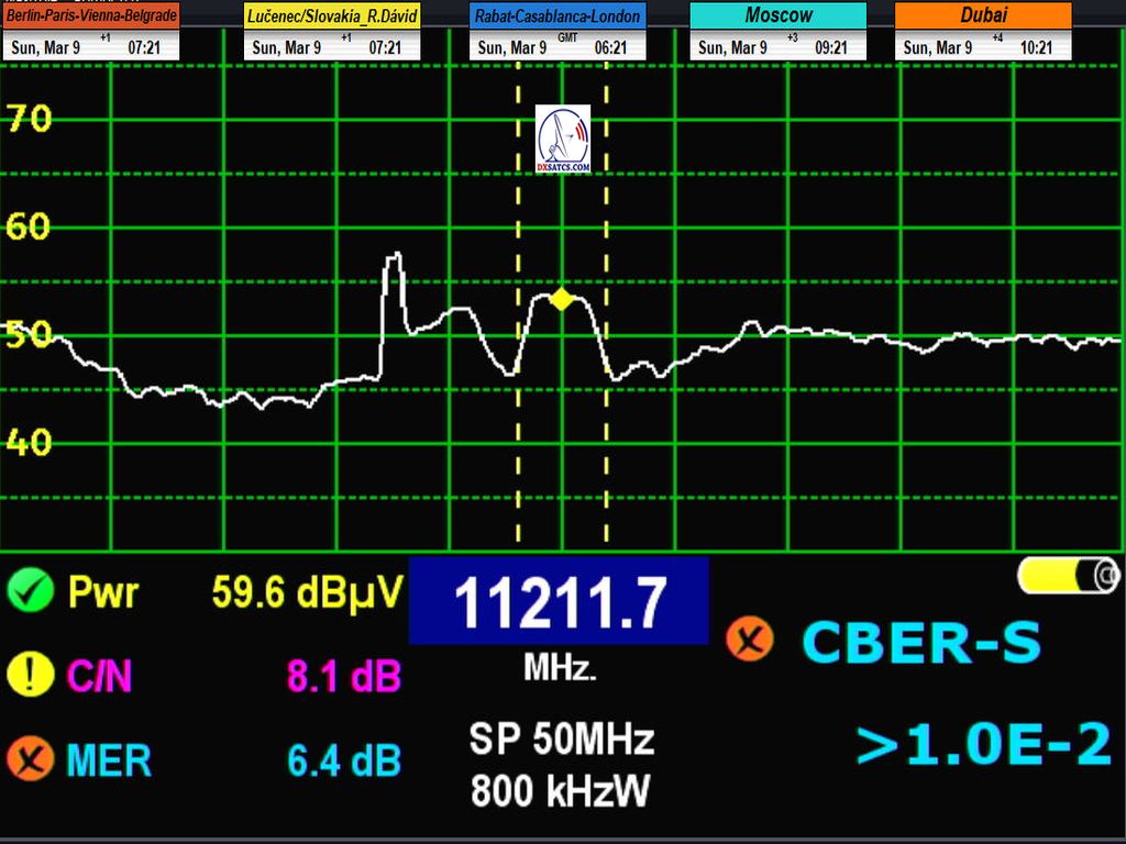 ►DE_Der Autor Roman Dávid und sein wissenschaftlich-forschungszentrum veröffentlichen heute als Erste in Europa unumstößliche Ergebnisse der Analysen zur erreichten Qualität und vor allem Stabilität des 99,99%igen Empfangs der TV-Trägerfrequenz METV auf f = 11.212 MHz_V vom Satelliten Amos 3. Diese Ergebnisse sind durch eine 72-stündige Signalüberwachungseinheit mit einer PF 450 cm Antenne für das geografische Gebiet Mitteleuropas verifiziert und nachgewiesen, insbesondere in Bezug auf die Möglichkeit des Satellitenempfangs aus dem Middle East Beam, nachdem am 5. März 2025 der Symbolratenparameter SR auf den aktuellen Wert von SR = 2.963 ksym/sec geändert wurde.