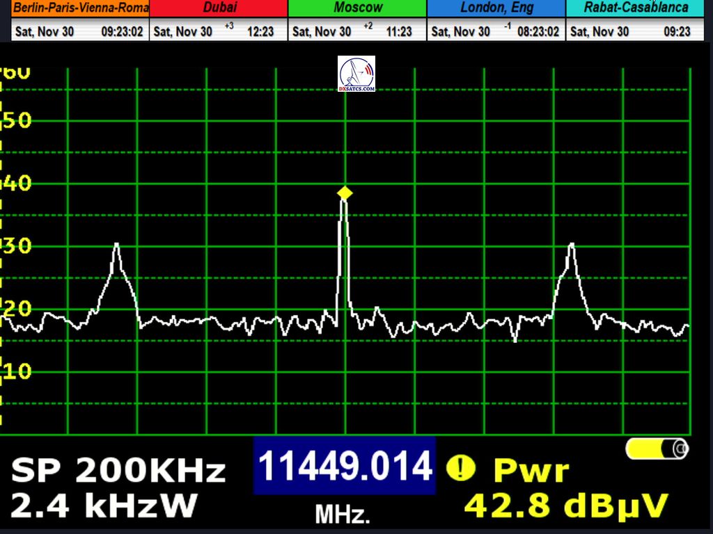 ►SK_Autor Roman Dávid definuje novú referenčnú frekvenciu a atribúty pre výber f0=10 890 MHz vo vyžarovacom diagrame Middle East konštalácie satelitov Amos 3/7 na 4,0°W pre zemepisnú oblasť Stredná Európa,potom čo došlo k frekvenčnému preskupeniu nosných a zároveň k vysokému poklesu v intenzite ich vyžiareného výkonu v okrajovej zóne stopy vyžarovacieho diagramu Stredný východ v horizontálnej polarizácii za posledné dva roky.
