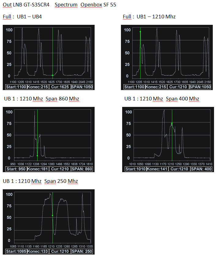 LNB : GT Sat typ GT-S3SCR4 - prevádzkové kanály: 1210,1420,1680,2040 MHz
