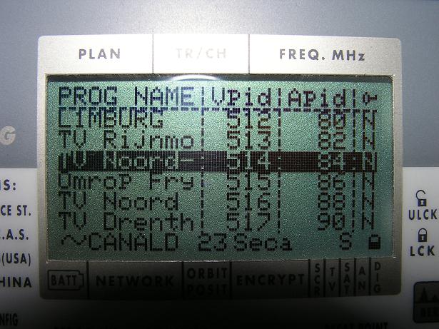---SR--- | ---FEC--- | ---Footprint--- | ---Antenna--- | -----Video/Encryption----- |