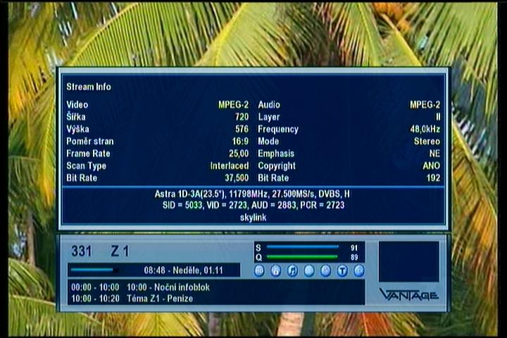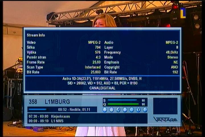 Astra 1E/1G/3A at 23.5°E : stream data & percent Q