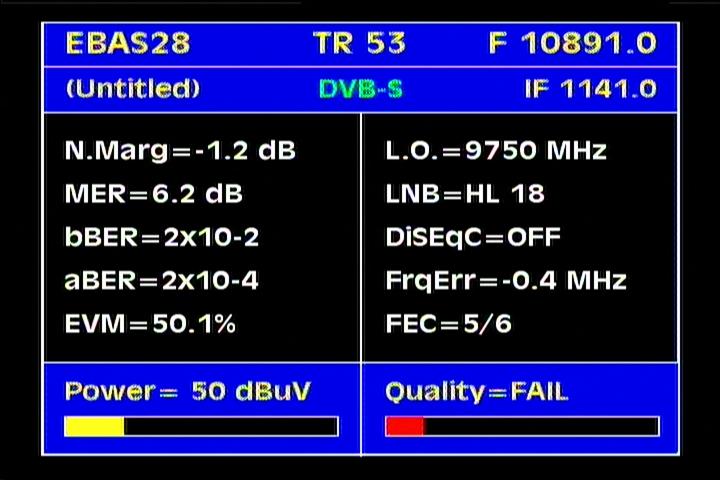 Astra 2D at 28.2°E - H+V North footprint : Radiating diagram & spectrum analysis & quality analysis of reception