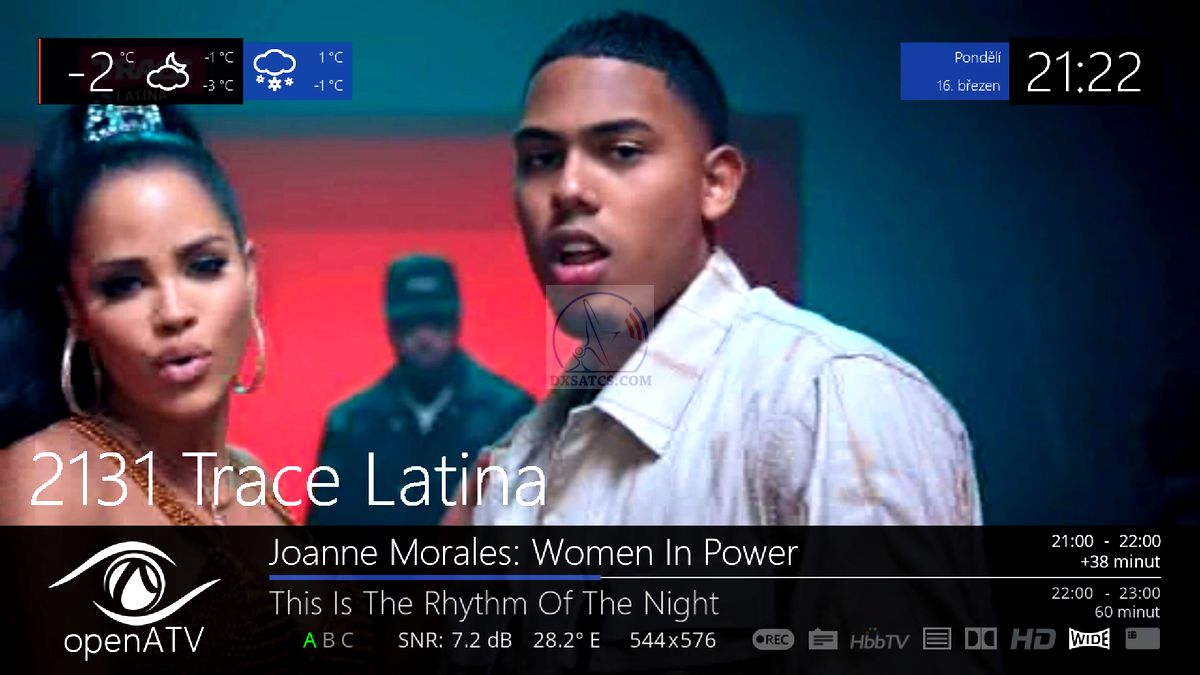 na transpondéte TP č.34 @ f=12 363 MHz v britskom vyžarovacom lúči geostacionárneho objektu Astra 2F.