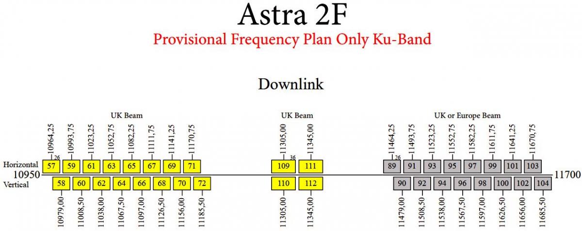 Astra 2F-Britský vyžarovací diagram,ktorá verifikuje vysielanie v britskom vyžarovacom diagrame a prítomnosť