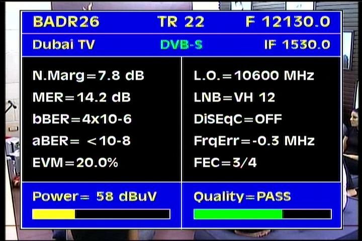Badr 6 at 26.0°E : percent Q & stream data