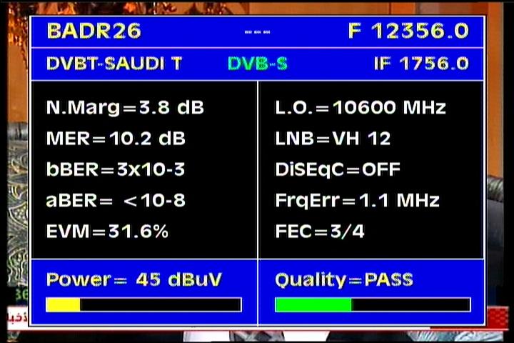 Badr 6 at 26.0°E - BSS footprint :12 356 V Saudi Arabian Network