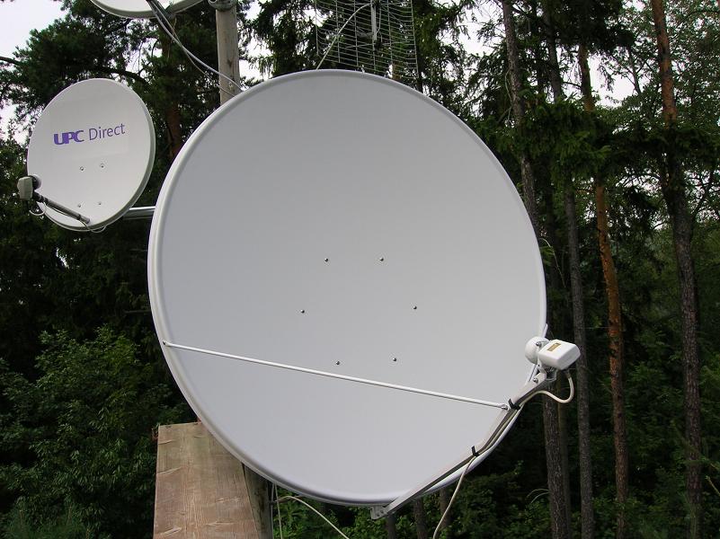 FOTOGALÉRIA č.2 : Komplet pozostávajúci z ofsetovej antény GIBERTINI OP150 cm vo fixnom uchytení ktorý je nasmerovaný na družicu EUTELSAT W4 na 36°E+bežný UNI LNB Invacom SNH 031 bez depolarizačnej doštičky vo vlnovode.