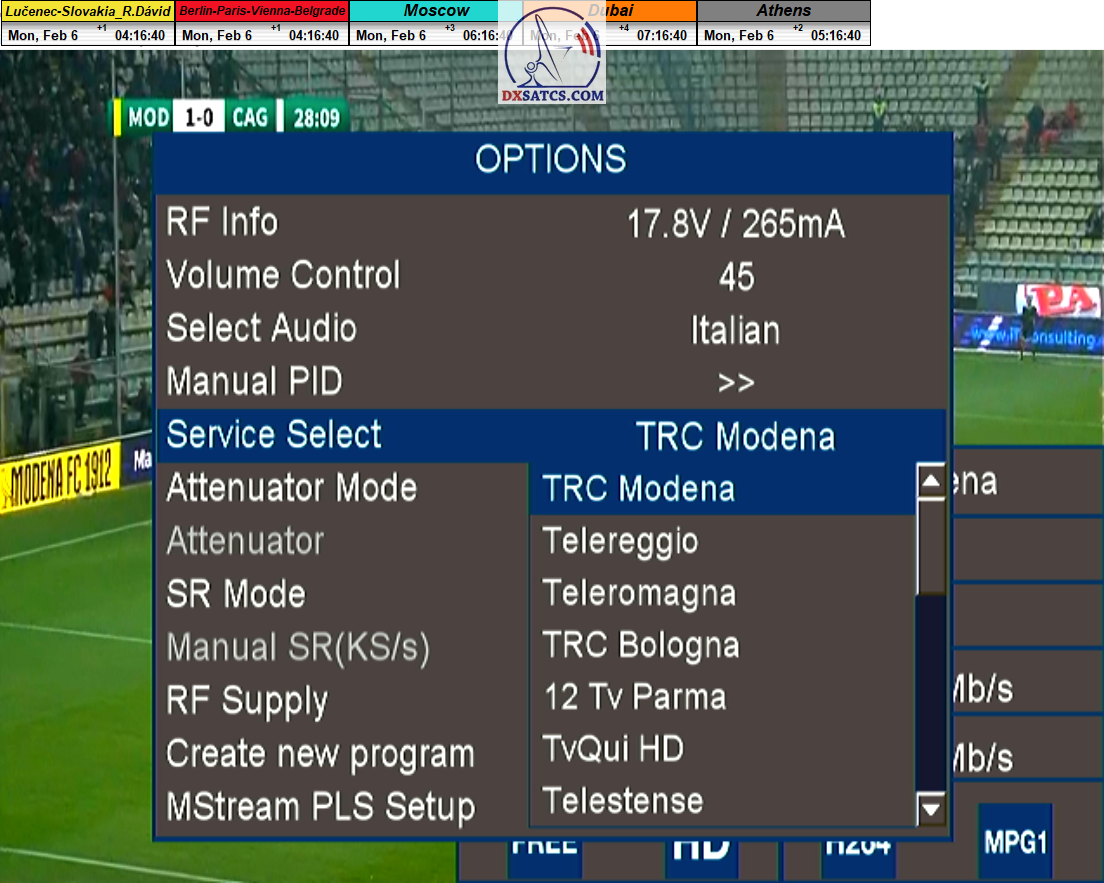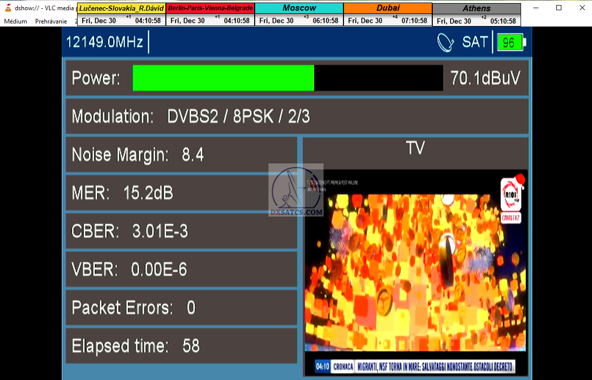 ►zámerne beží na pozadí meraní vysielanie TGCOM 24+R101 s kódom o aktuálnom čase,za účelom vylúčenia podvodov a verifikáciu správnosti času