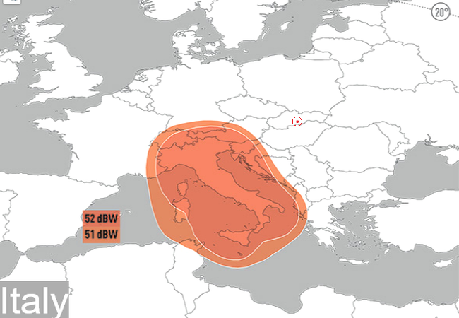 -obsahová stránka centra pre normu DVB-S2/S2X Multistream pojednáva o technických aspektoch príjmu z vyžarovacieho diagramu Italy v KU pásme,