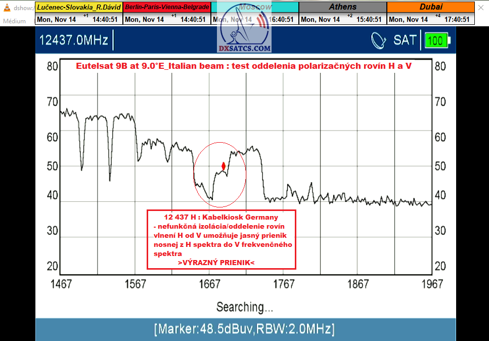 > táto moja "logická a zjednodušujúca myšlienková skratka" platí výlučne pre časť frekvenčného spektra od 12 111 do 12 466 MHz-V v zemepisných podmienkach strednej a východnej Európy družice Eutelsat 9B na 9.0°E pretože napríklad vo frekvenčnom spektre od 10,7 do 10,95 GHz GEO objektu Astra 2E_UK beam platí presný OPAK môjho predchádzajúceho tvrdenia pre identickú zemepisnú oblasť,pretože tam je miera vzájomnej