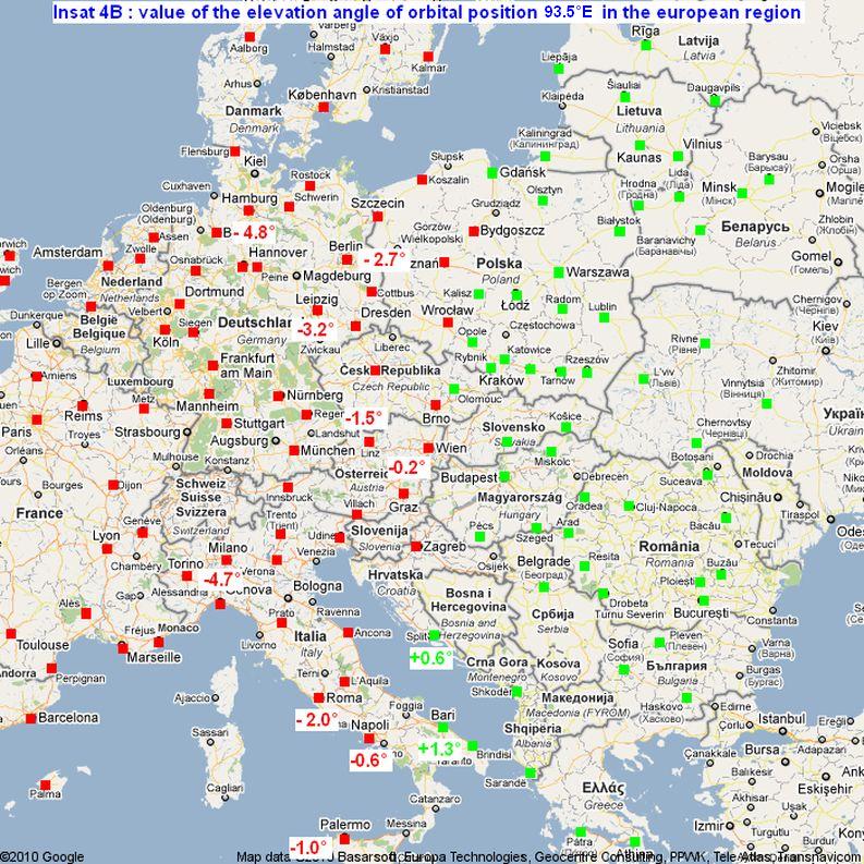 --- Insat 4B at 93.5°E : geographical limit for the possibility of receiving satellite the size of the elevation angle ---