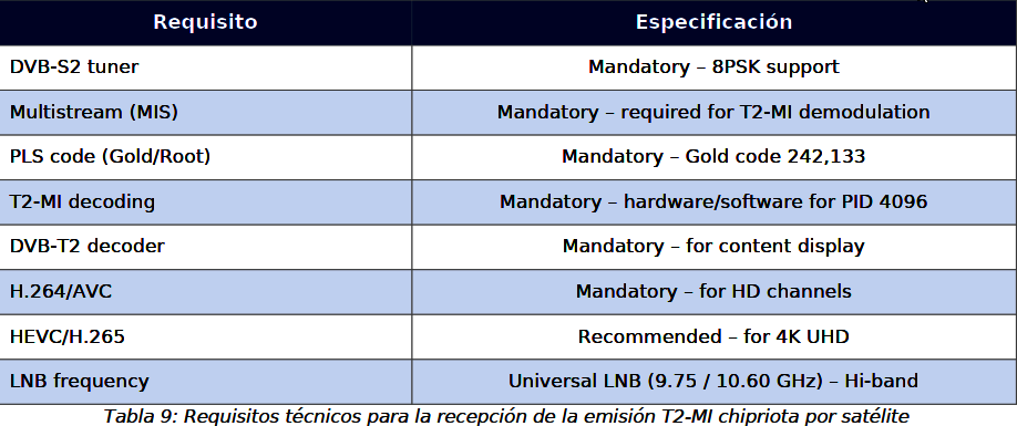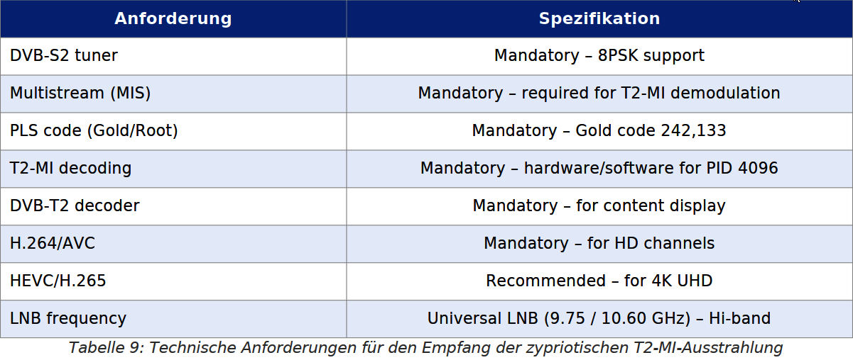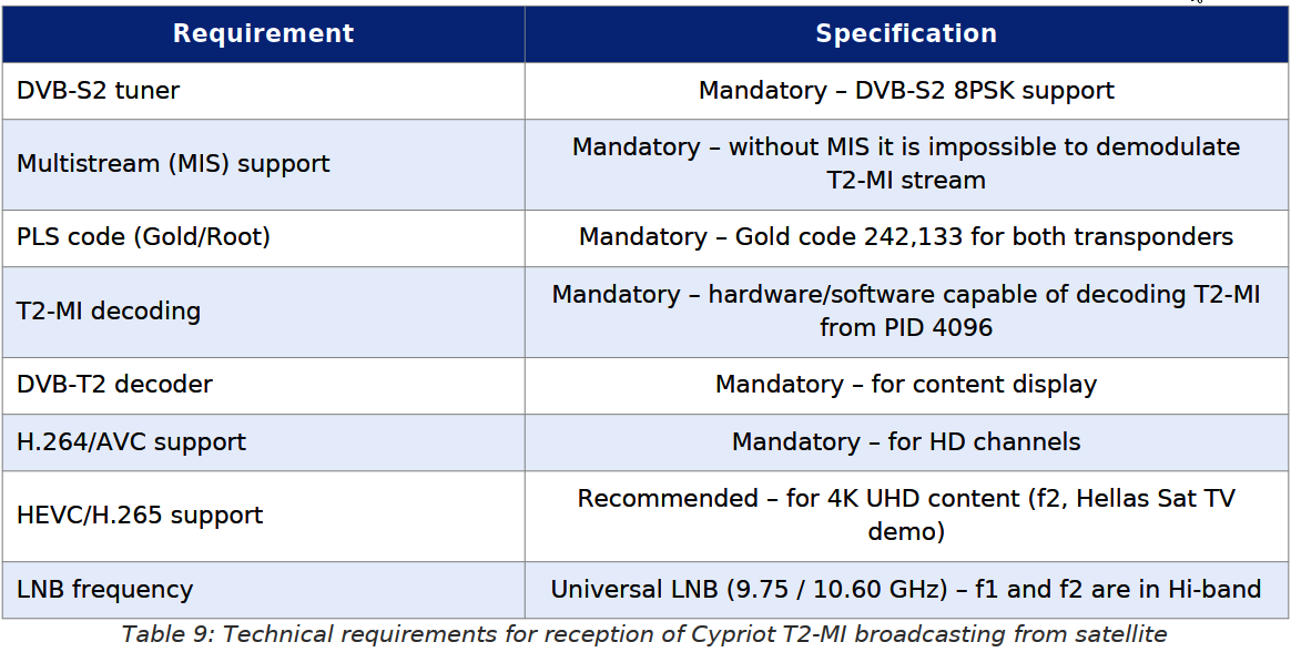 45–60 cm na Cypre a v Grécku. Cyperský T2-MI link je preto možné monitorovať vo väčšine európskych krajín, čo má vedecký a pozorovateľský zmysel pre výskumné centrá zamerané na DTT technológie.