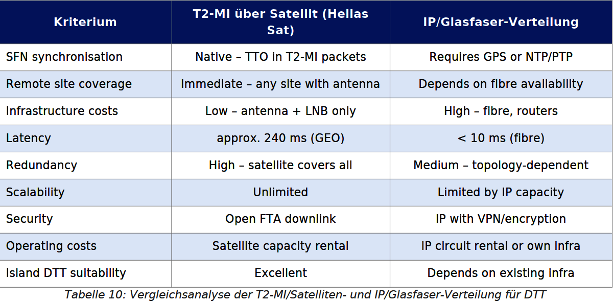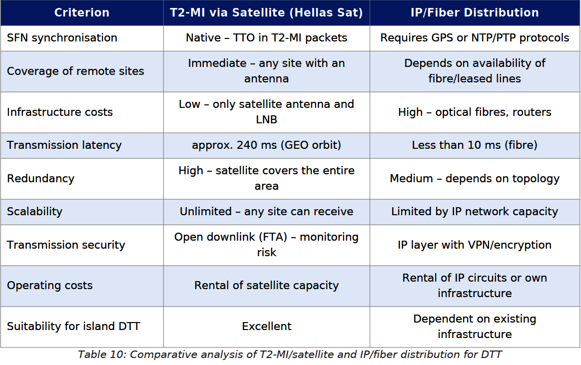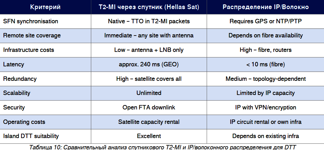 Кипрская система распределения T2-MI/DVB-T2 представляет собой современный и технологически высокоразвитый подход к построению наземной DTT-инфраструктуры в небольшом европейском островном государстве. Использование спутникового канала T2-MI через Hellas Sat 3/4 на 39,0° в.д. в качестве основной цепочки распределения является изящным решением. Ключевые научные выводы:
