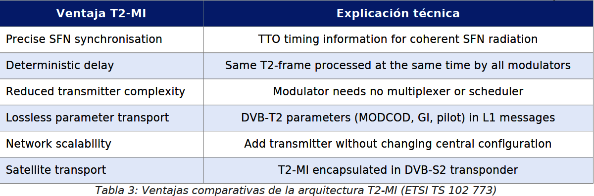 T2-MI (T2 Modulator Interface) je rozhranie definované normou ETSI TS 102 773 (DVB Bluebook A136), ktoré slúži na transport vopred spracovaných, avšak ešte nemodulovane uložených dátových rámcov DVB-T2 od centrálneho T2-Gateway zariadenia k jednotlivým modulátorom v distribuovanej sieti. T2-MI je základným stavebným kameňom, ktorý u- možňuje prevádzku synchronizovaných sietí SFN bez potreby lokálneho multiplexora v každom vysielacom uzle.