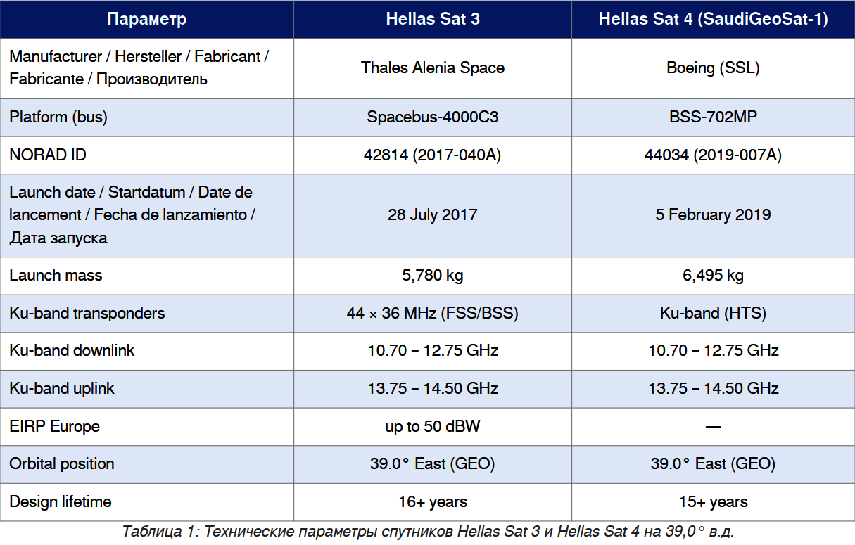 3. HELLAS SAT 3/4 — ТЕХНИЧЕСКАЯ ХАРАКТЕРИСТИКА СПУТНИКА НА 39,0° В.Д.