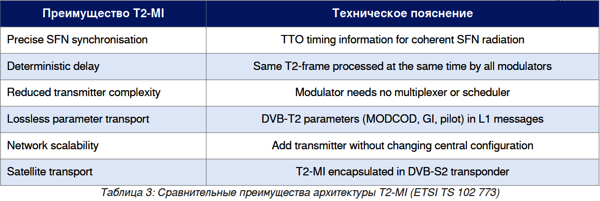 3. Архитектура T2-MI обеспечивает SFN-синхронизацию посредством временных меток TTO без внешних