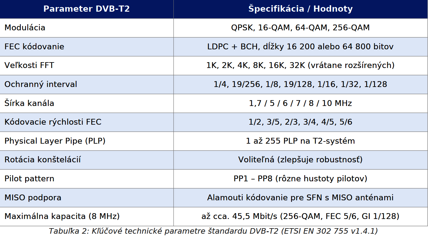 4.1 Kľúčové technické vlastnosti DVB-T2