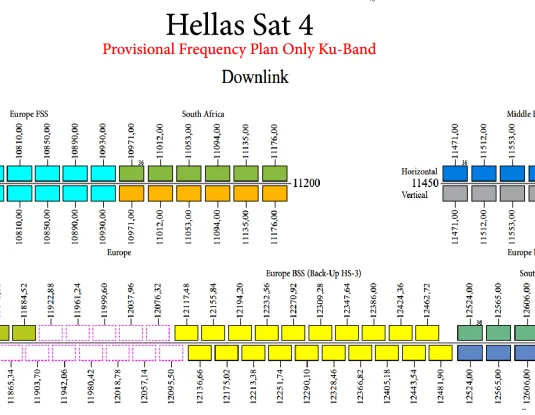 Согласно таблице частотного планирования и на основе методологической процедуры измерения качества и подтверждения достигнутой стабильности приёма, которую я определил для зон спутникового приёма как внутри, так и за пределами зоны покрытия каждой диаграммы направленности, я могу однозначно подтвердить, что две несущие частоты, а именно f1 = 11 760 МГц (H) и f2 = 11 779 МГц (H), на которых применяется технологический стандарт T2-MI на спутнике Hellas Sat 4 (39°E), сосредоточены в диаграмме направленности EUROPE BSS.