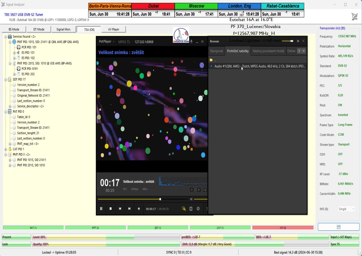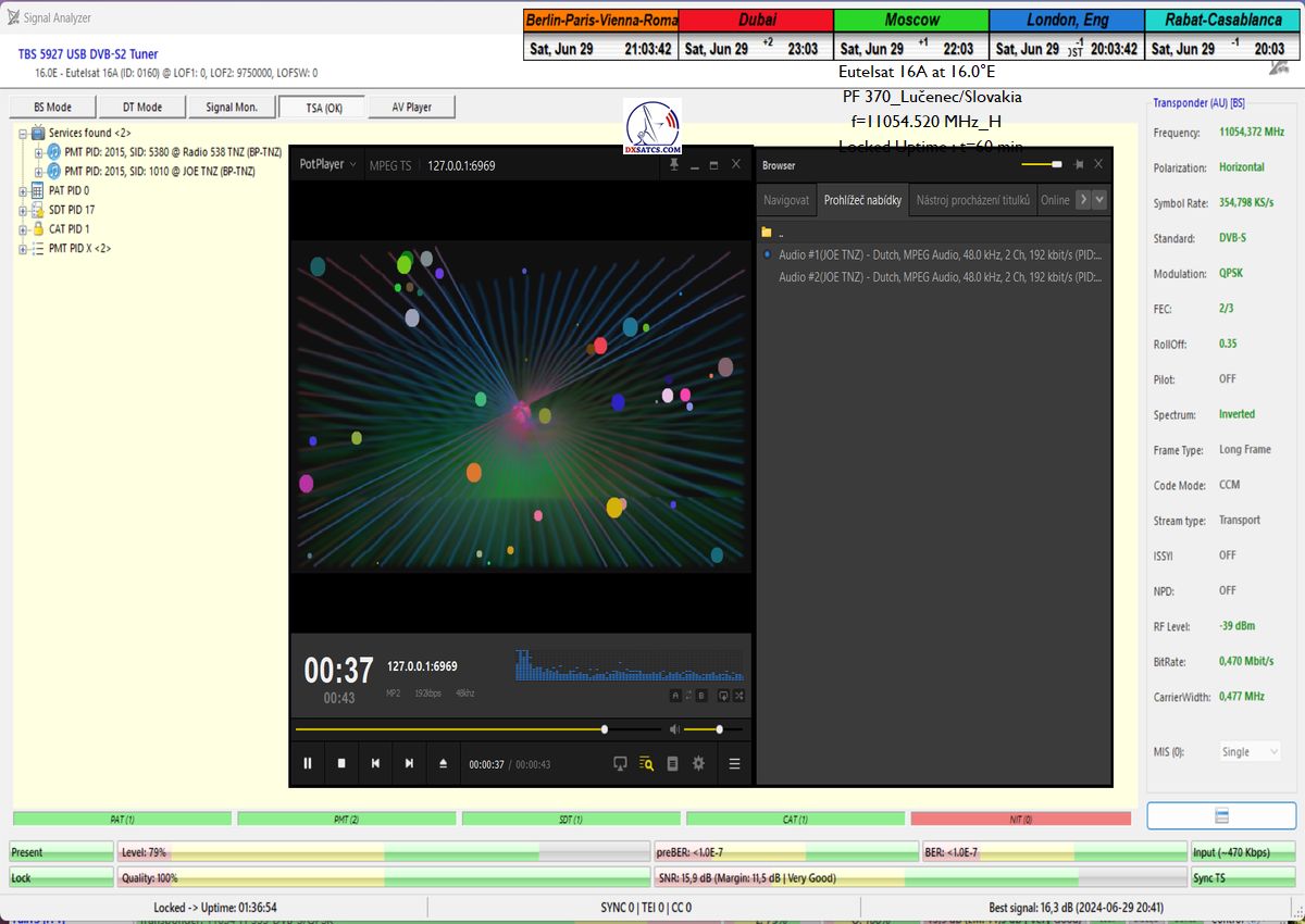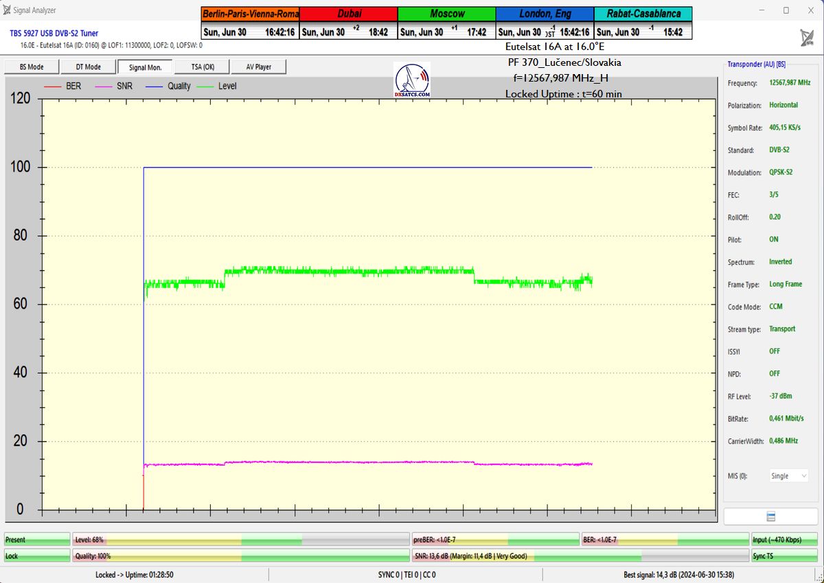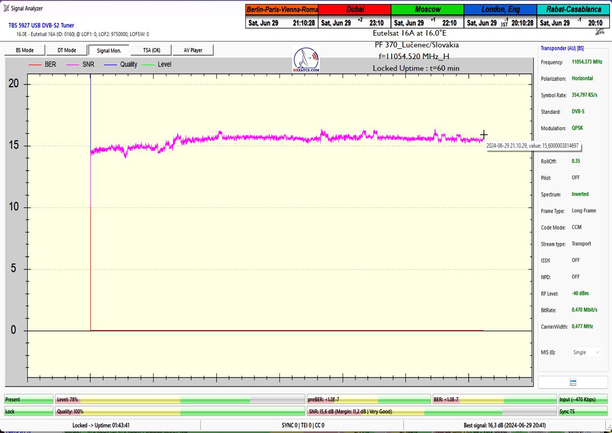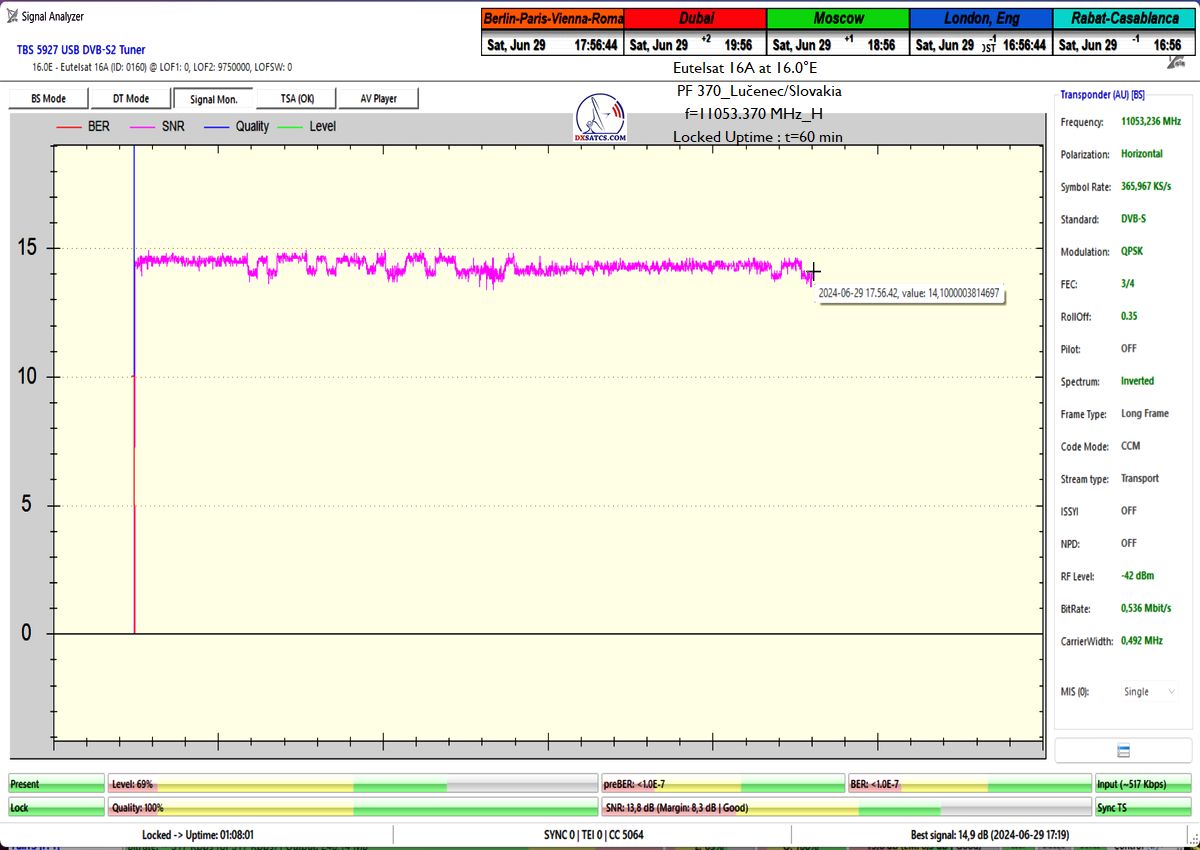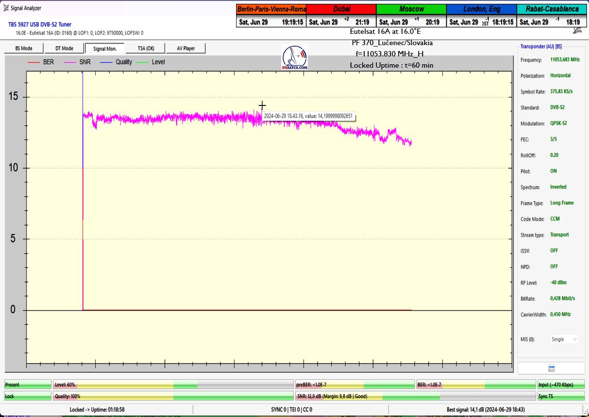 z orbitálnej pozície šestnásť stupňov východne,čo je dôvodom prečo som ho aplikoval do signálnych reťazcov pri každom z vykonaných signálnych