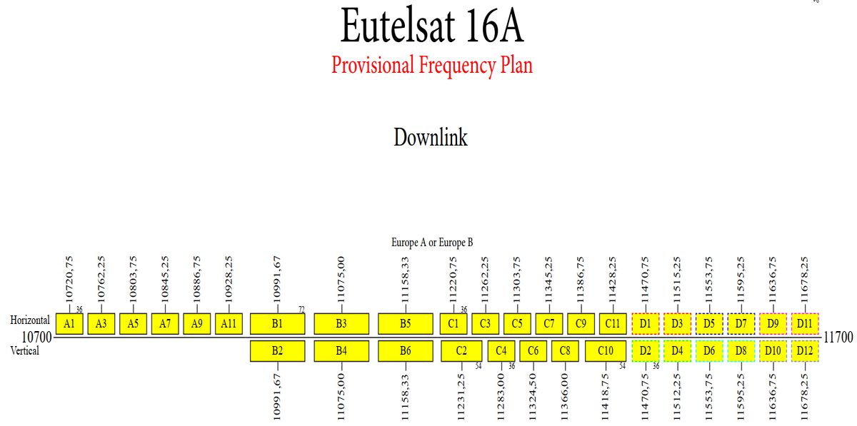 Provisional frequency plan configured for the orbital position 16.0° East