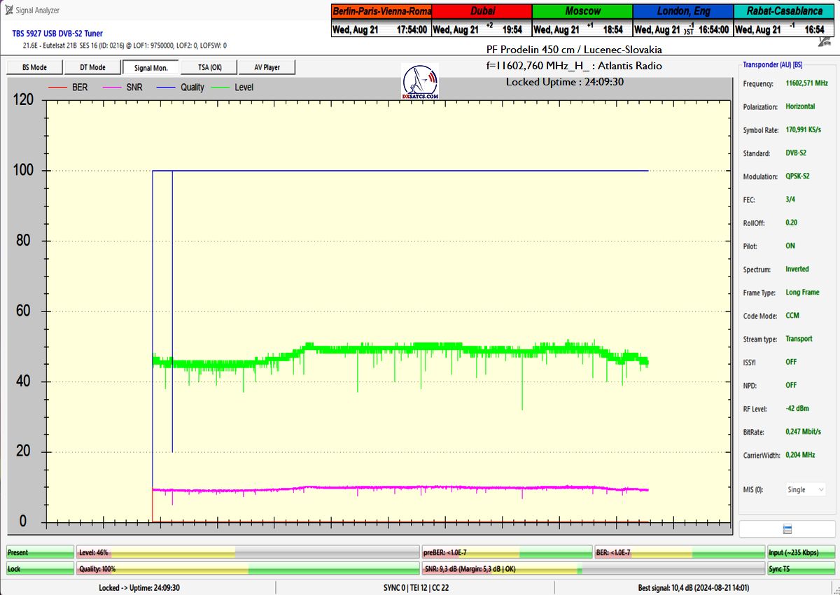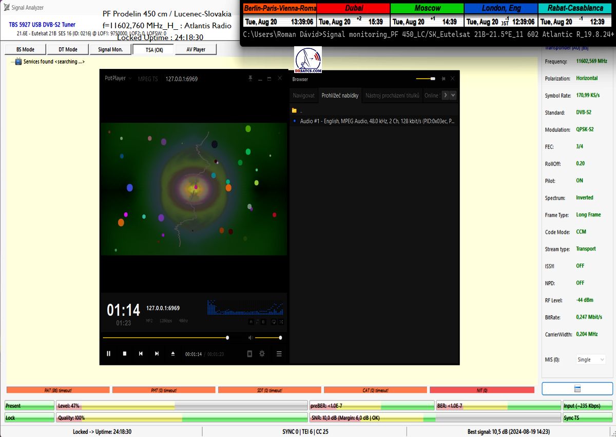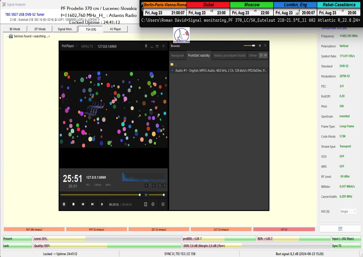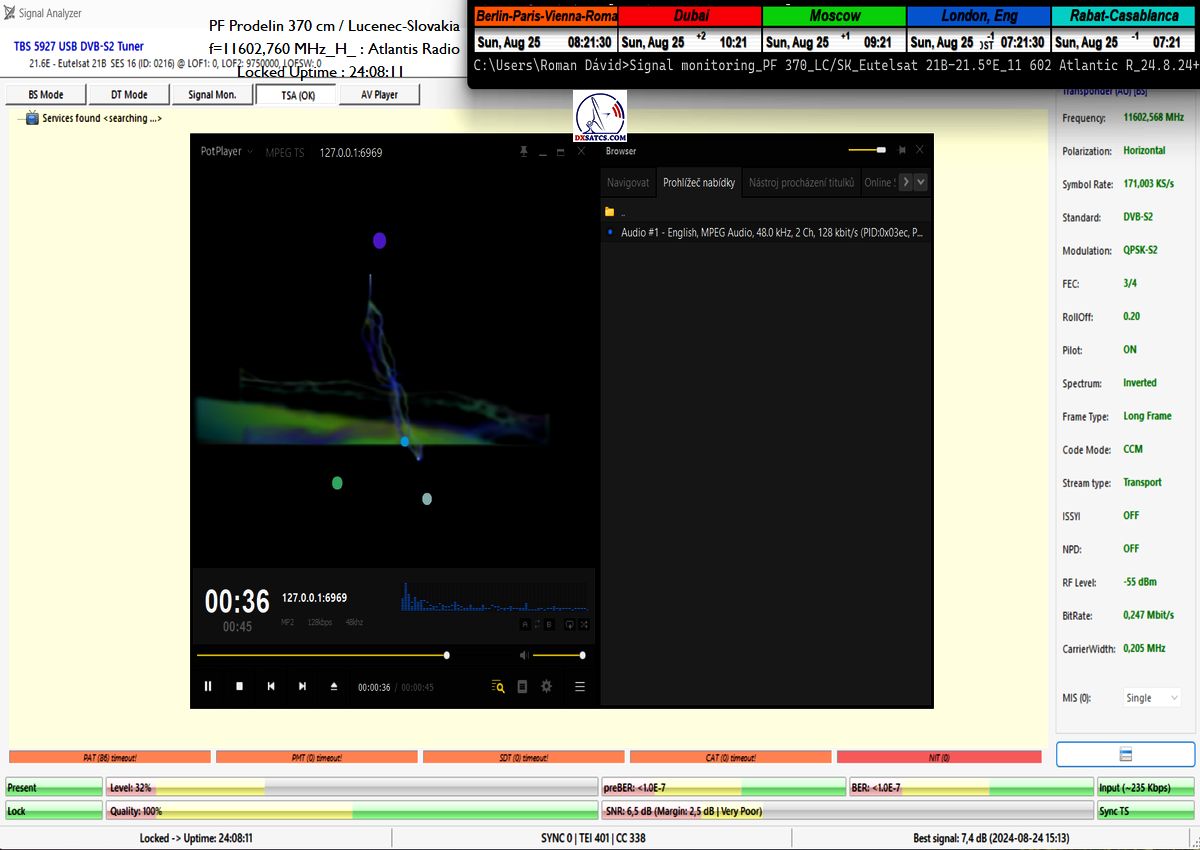 ►+24 hodín _ Priebežný stav v signálnom monitoringu dňa 21.8.2024 a online video ukážky z vysielania Rádia Atlantic _ TSA OK