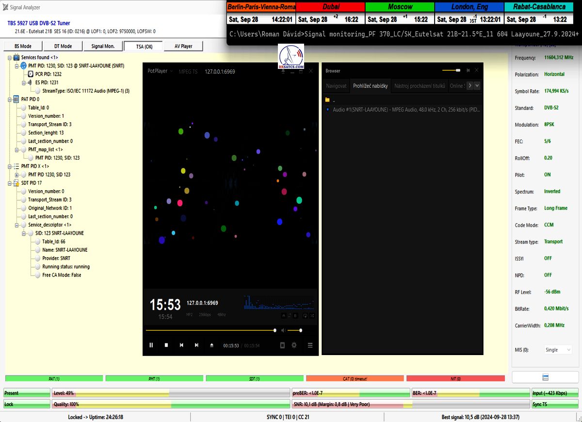 +25 hodín _ Priebežný stav v signálnom monitoringu dňa 30.9.2024 a online video ukážky z vysielania Rádia Laayoune_ TSA OK