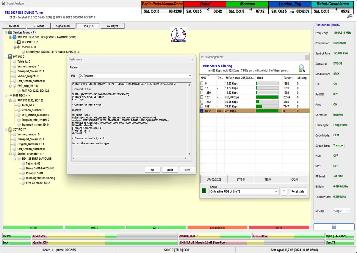 ►►Eutelsat 21B at 21.5°E-Western-11 604,300 MHz-Radio Laayoune : Statistics of PIDs in the TS and HTTP Stream reader