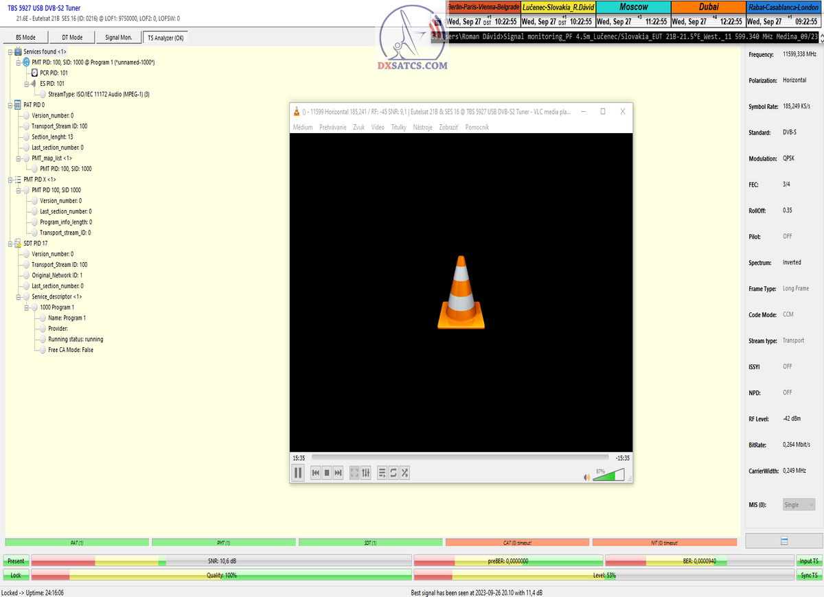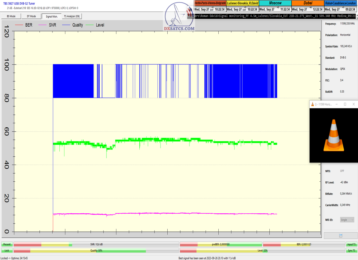 ďažďových prehánok dňa 30.9.2023 pri monitoringu rádio prenosu SNRT Dakhla s SR=175 Ksym/s.Zámerne som kvantitu monitoringu zdvojnásobil