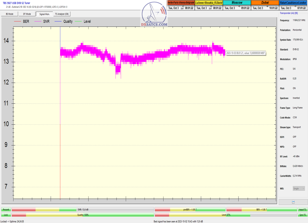 TBS 5927+EBSpro >>> SNR peak=13,9 dB