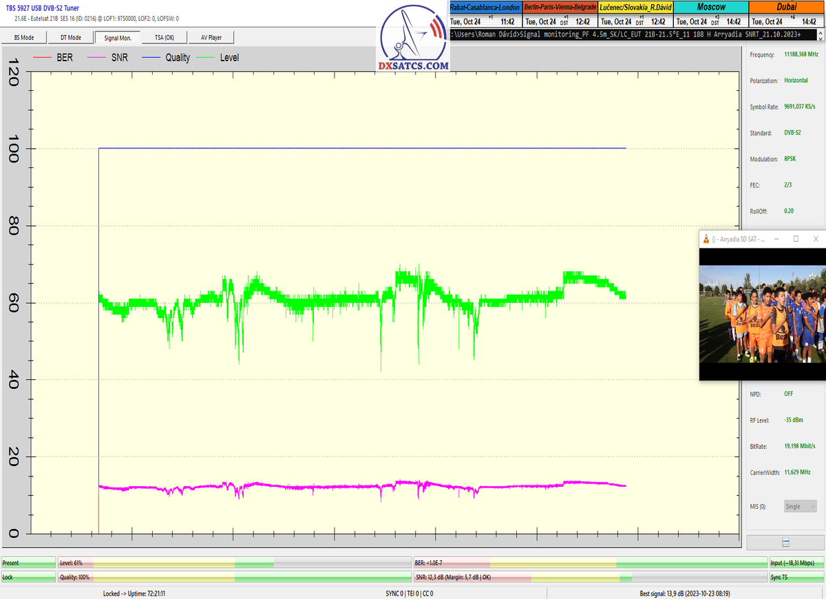 ►Analýza signálneho monitoringu od 21.10 do 24.10.2023 : dosiahol som dokázateľne exemplárny stav kvality príjmu na f=11 188 MHz