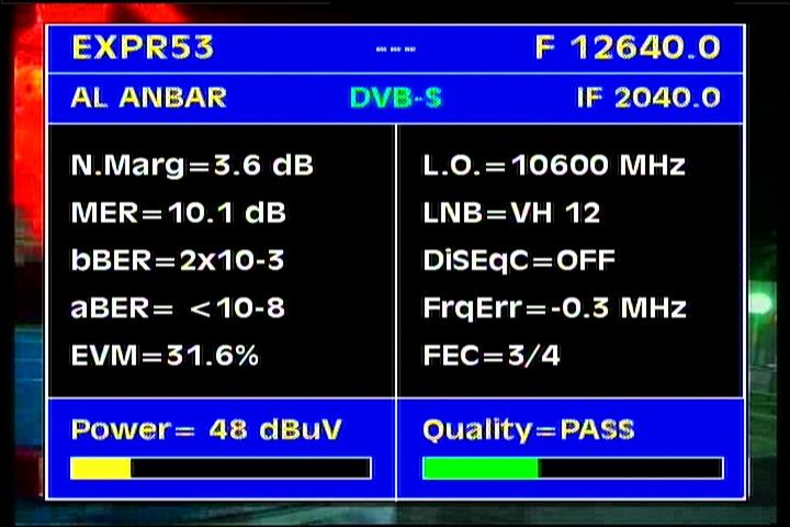Express AM22 at 53.0°e - S2 beam : 12 640 H Al Anbar TV