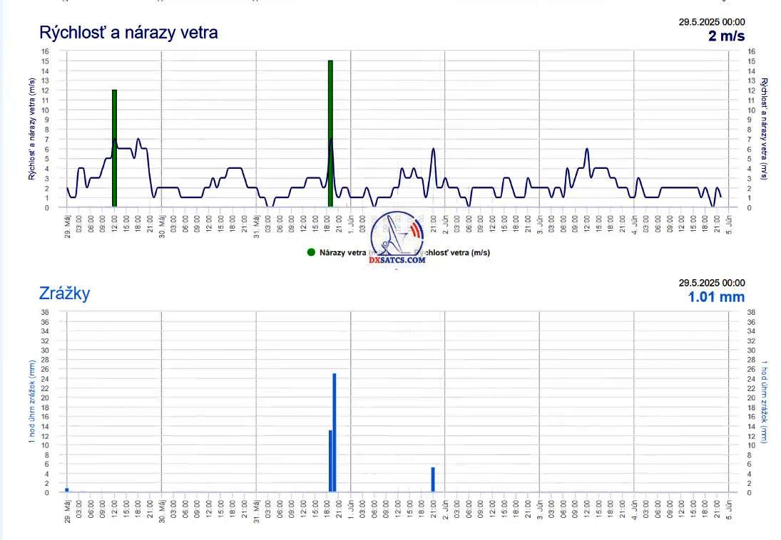 ►EN_Based on meteograms from the source shmu.sk, I can confirm that during the signal monitoring campaign, clear skies prevailed over Lučenec. Only in the evening of June 1, 2025, a thunderstorm cloud system passed over my area, accompanied by rain showers — supported by evidence from shmu.sk