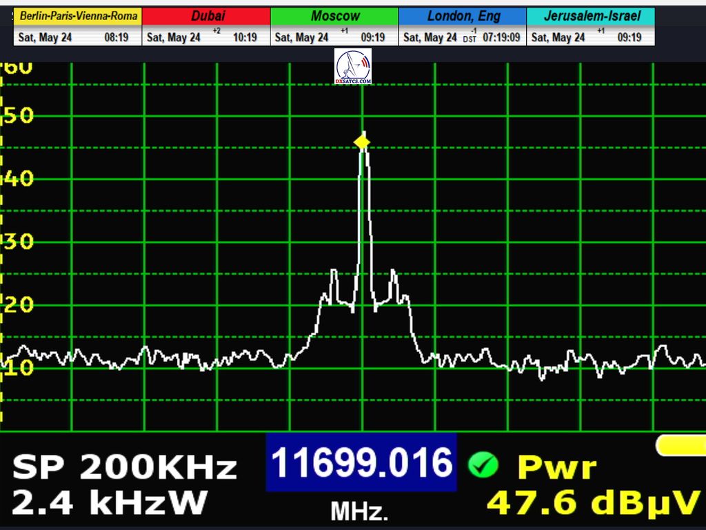 ►SK_Prvá analýza nosnej frekvencie prenosu NNTV na f=11 070 MHz(V), smerovanej do zemepisnej oblasti pevného lúča (Fixed-1 beam),určeného na regionálne pokrytie európskej časti Ruska a priľahlých regiónov zo satelitu Express-AM7 na pozícii 40,0°E.