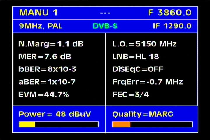 to 13 dB_MER=18+ dB.In the field of measurement and analysis of the quality is regularly repeated qualitative state