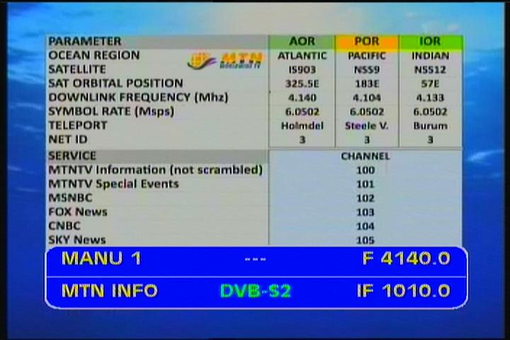 4 141 R : Packet MTN SAT TV                 Europe , Africa , ME , S&N America ...