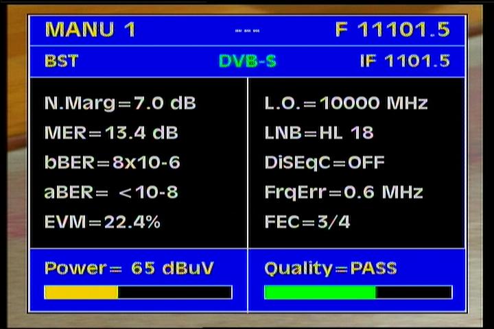 spectrum of TP64 transponder which is directly linked to high levels of gain margin in the range of MER=10-12 dB,depending