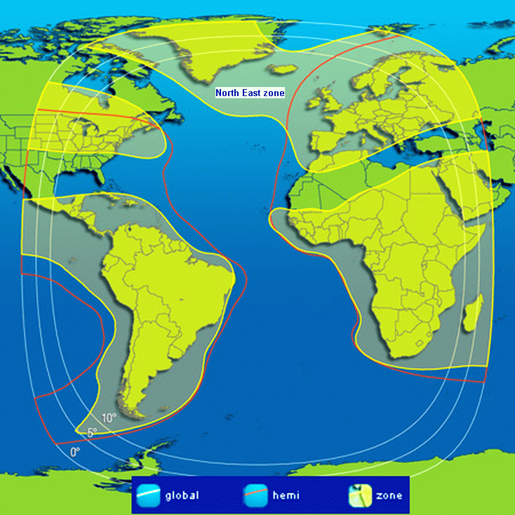 North East beam East Hemi beam Global footprint