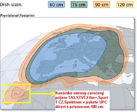 Nakoľko družica Astra 3A na orbitálnej pozícii 23,5°E plni úlohu záložnej družice k sústave družíc ASTRA 1C -2C na 19E a v globále sa väčšina prenosov distribuje pre káblove rozvody v NEMECKU aj vyžarovaci diagram je pomerne úzko smerovaný do oblasti Strednej Európy kde sa sústredí maximum vyžiarenej energie EIRP viac ako 50 dBW a smerom na západ -Francúzsko,Španielsko.....Kanárske ostrovy úroveň vyžiarenej energie prudko klesá,čo súvisí s potrebou zvyšovania priemeru príjmacej antény. Z vlastnej skúsenosti /Las Palmas-Gran Canaria/ Vám možem povedať že s priemerom 240 cm sa na Kanárskych ostrovoch nedosiahol ani len náznak meratelnej signálnej kvality určenej úrovňou Modulačnej chyby MER v analyzovanom spektre na f=12 565 MHz-SkyLink , čiže jediným riešením ostáva osloviť v danej oblasti osobu,ktorá vlastní vysoko ziskovú príjmaciu antenu s priemerom od 300 do 500 cm /sú ich tam namontovaných desiatky kusov väčšinou na príjem ASTRY 2D 28,2 °E/ a navrhnúť jej či by príjem vo vašej oblasti nemohla vyskúšat a potom budete s istotou vedieť či sa v danej lokalite dá zachytiť paket SkyLInk alebo NIE. Je lepšie sa vopred presvedčiť na inej satelitnej zostave so zaručeným ziskom k priemeru antény či je vo vašej oblasti vôbec šanca zachytit paket SKyLink ako najskôr investovať 3-5000 EUR do kúpy antény a potom nezachytit NIČ.