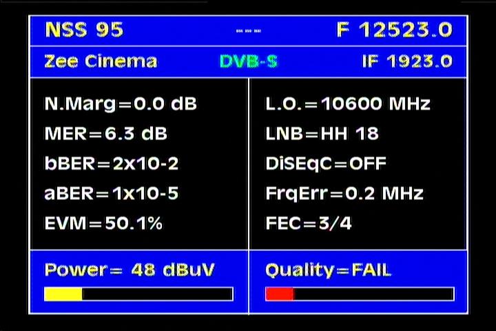 Measat 3 at 91.5°E-KU South Asia beam:MPEG-4 Big TV_V+H spectral scanning & ULPC beacon frequency