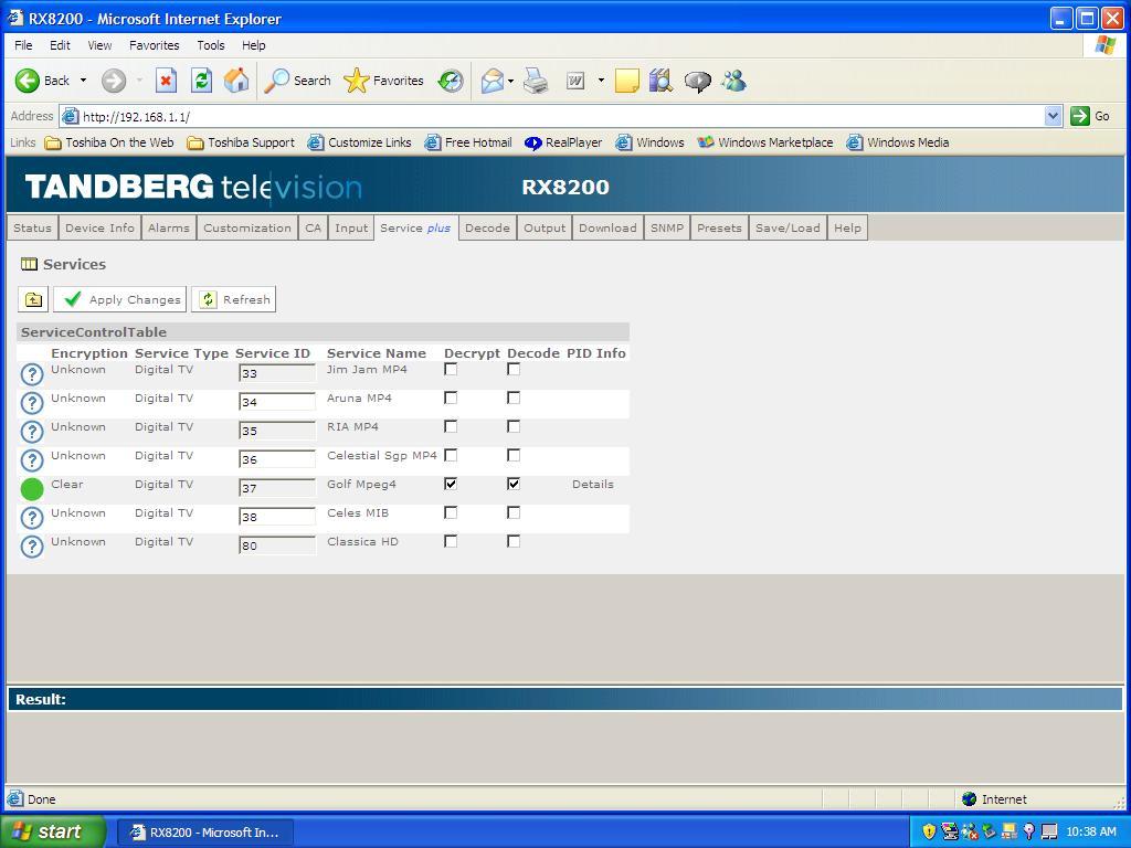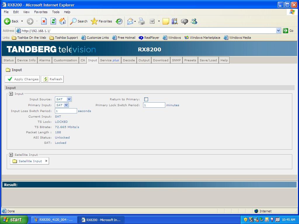 Measat 3A at 91.5°E - Global footprint : Tandberg RX 8200 _ measurement results