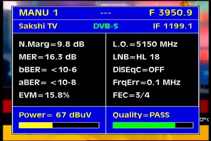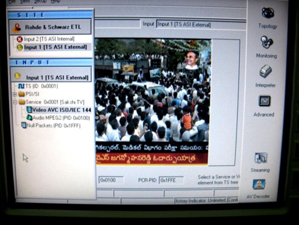from Sakshi TV.This Tandberg Receiver have a Low Sy facility,so i use the ASI output for monitoring in the R&S.